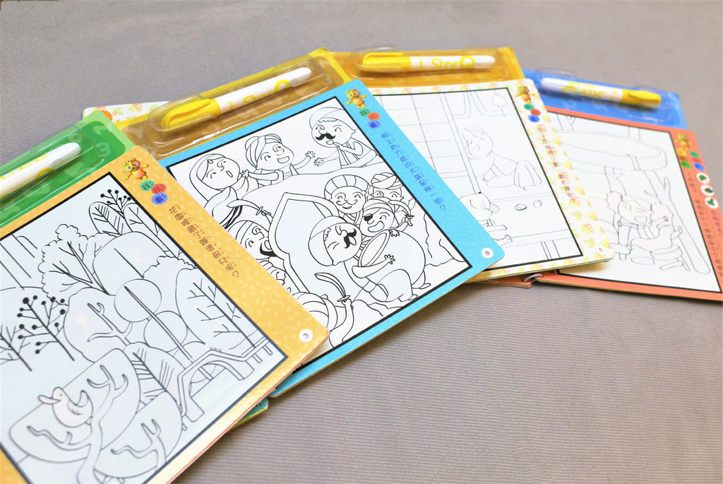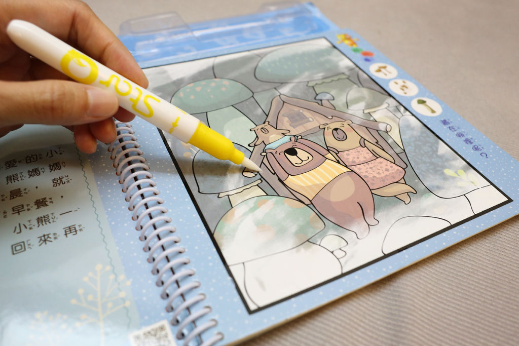 可以一邊聽故事,一邊用水畫筆塗鴉上色,放鬆又充滿樂趣