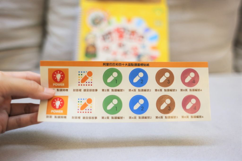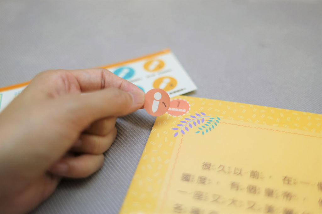 先將隨書附上的點讀貼紙貼好,依序貼上書籍內頁,就可以開始聽故事,孩子可以自行學習、聆聽,對於學習更有幫助囉!