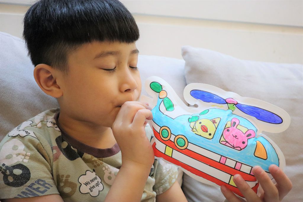 我還是第一次接觸到這種「充氣著色小汽車」呢! 真的太好玩了,平面的畫紙只要輕輕一吹,就馬上變成立體車,孩子好驚訝啊!