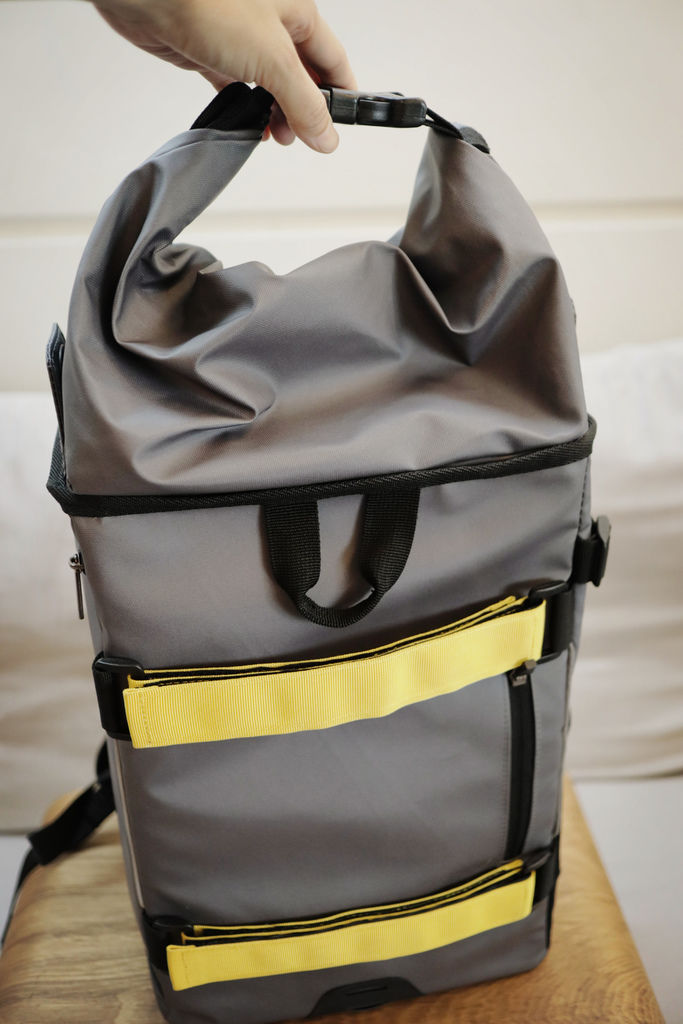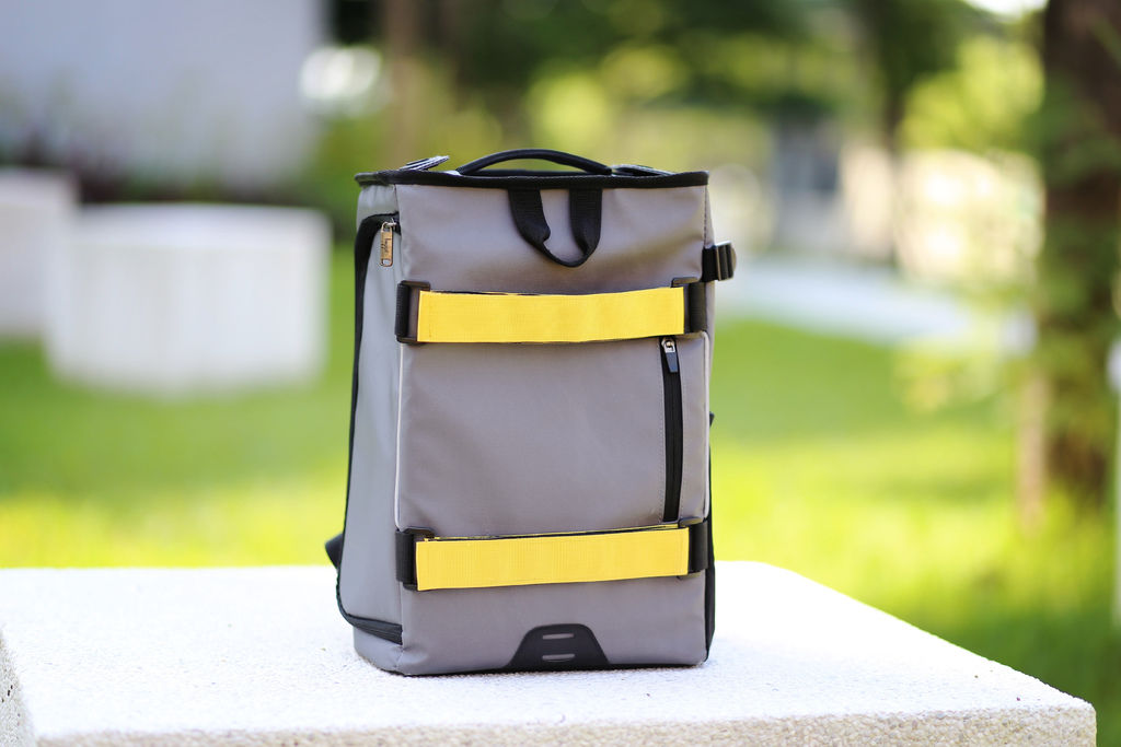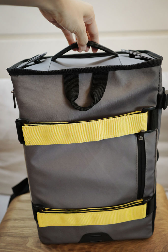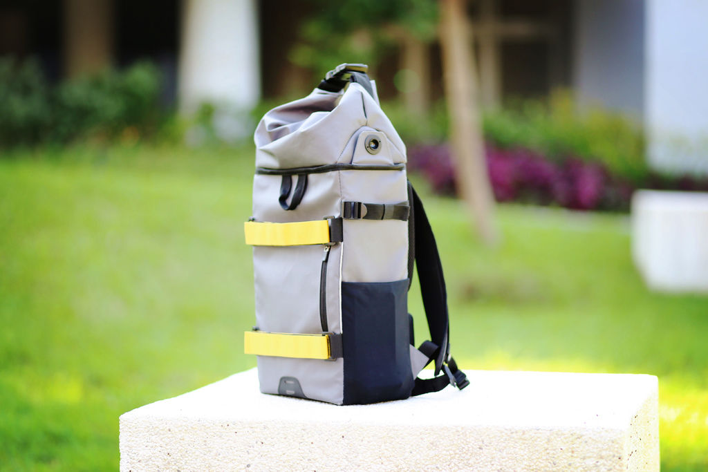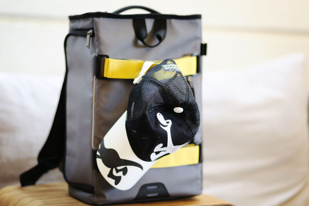一開始讓我眼睛一亮的,是灰色與黃色黏扣織帶的設計!