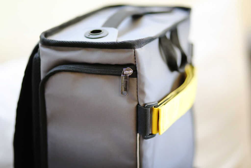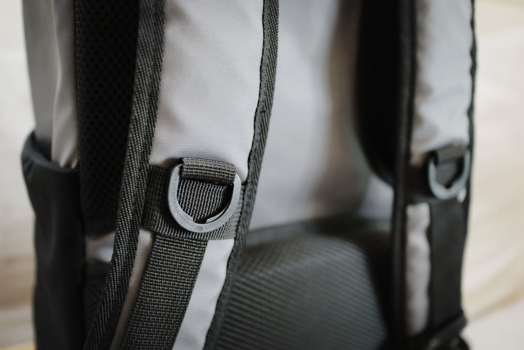 這個磁扣也是大有來頭! 是採用德國專利 Fidlock 磁扣,利用磁吸讓拆裝對位,非常順手就可以把子母袋穩當當的放置在書包上