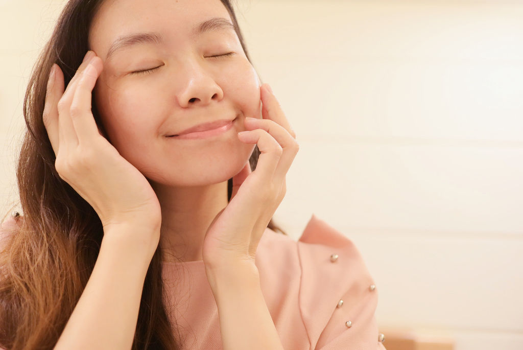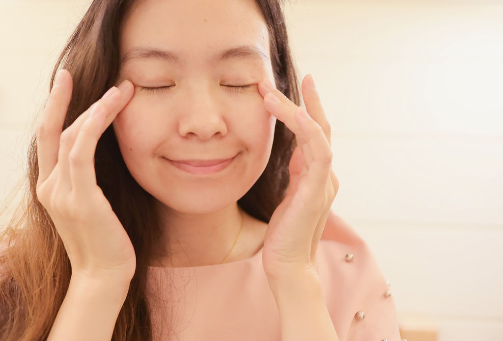 再按順序從眼周、兩頰、額頭、下巴以及其他需要加強的部位推均勻
