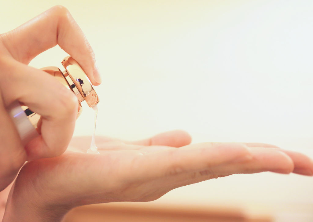 首先~~按壓2下於掌心,利用手掌的餘溫,能幫助撫紋修護露更容易被吸收