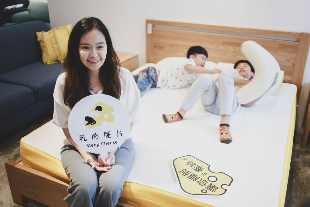 值得一提的是,當天我在試躺的時候,【乳酪睡片】的創辦人正在旁邊,才知道這個品牌是傳承自40年老經驗的台灣床墊工坊