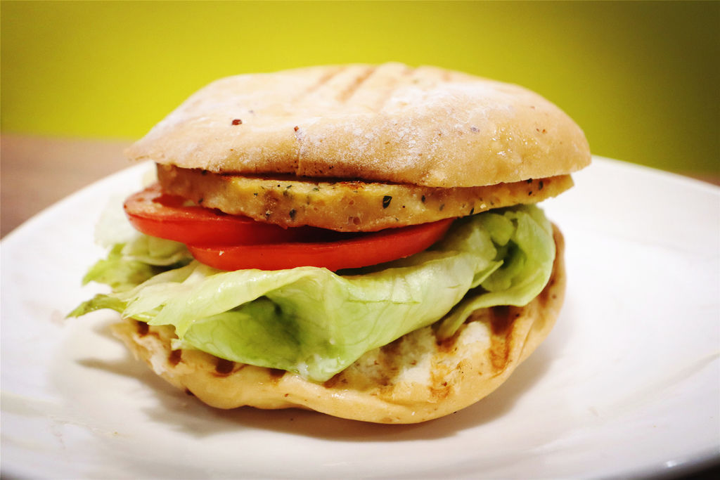 像這個米香與嫩雞擦出完美火花的「香草嫩雞藜麥米穀堡」,中間夾層是一片不油不膩的酥脆口感香草嫩雞