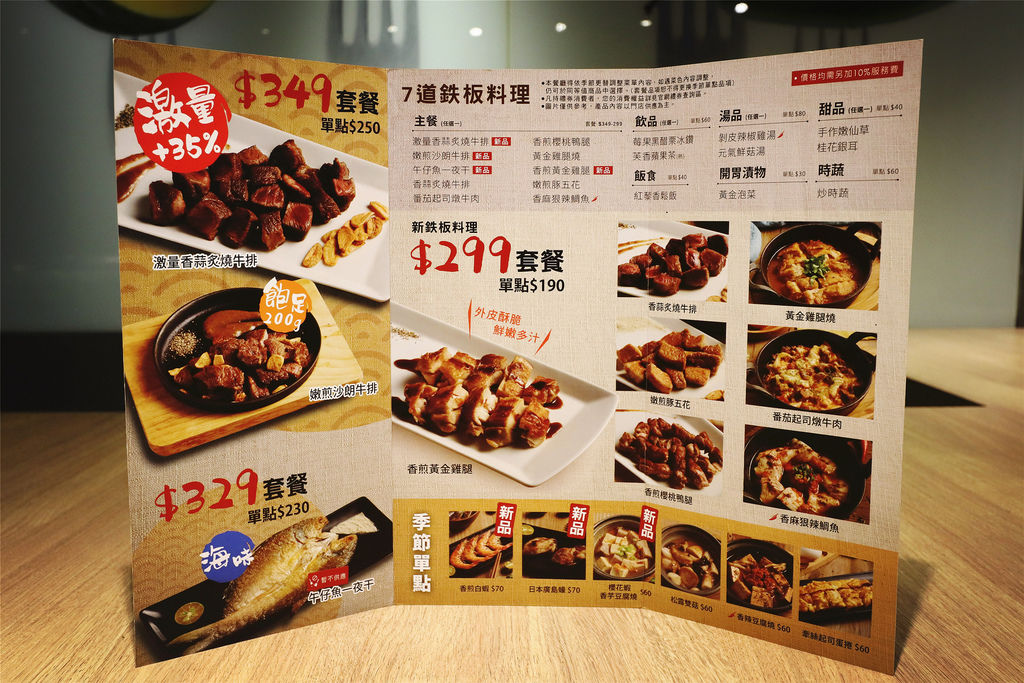 扎扎實實的七道鐵板料理,價格位於299~349元之間,你說是不是夠划算!