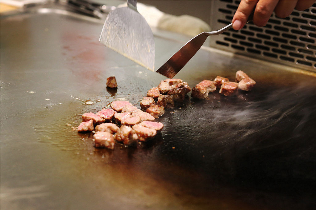 感受著越來越明顯的香氣,看著鐵板師傅熟練的烹調手法和超大塊的牛排,我知道這一餐將會吃得很滿足!
