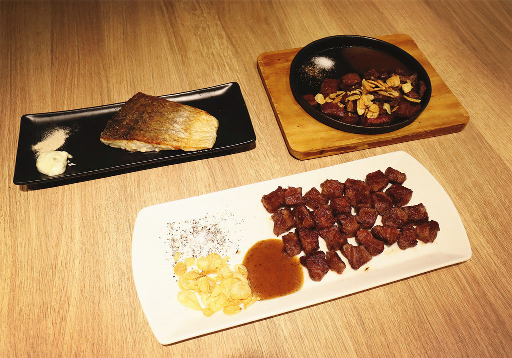 這次我們點了「激量香蒜炙燒牛排、嫩煎沙朗牛排、香煎鱸魚排」每樣餐點都是絕佳的好滋味,份量也讓人超滿足