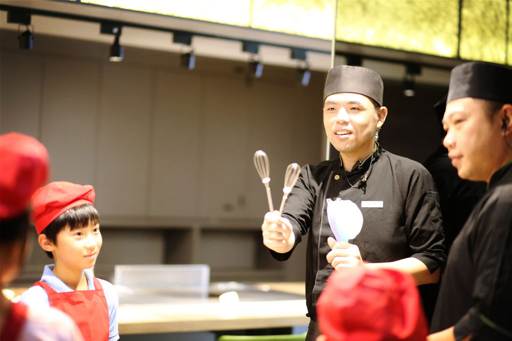 鐵板師傅也會為孩子們介紹每一項烘焙工具的用法,並清楚講解手作銅鑼燒的流程