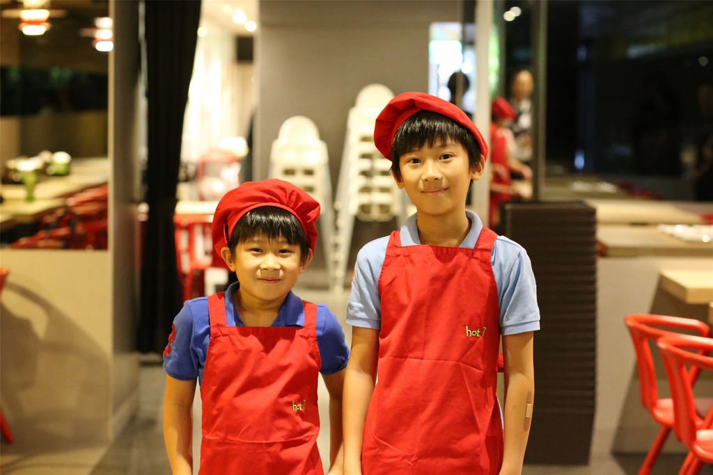 這次在【hot 7 新鉄板料理】不只有用餐,吃飽喝足了還有親子活動呢! 小朋友可以成為小廚師,先著裝完成,就能開始盡情體驗囉~