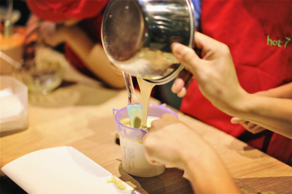 從著裝到製作完畢的時間大約將近一個小時,隨著越來越多孩子完成銅鑼燒,整個 hot 7 也充滿甜蜜蜜的香氣