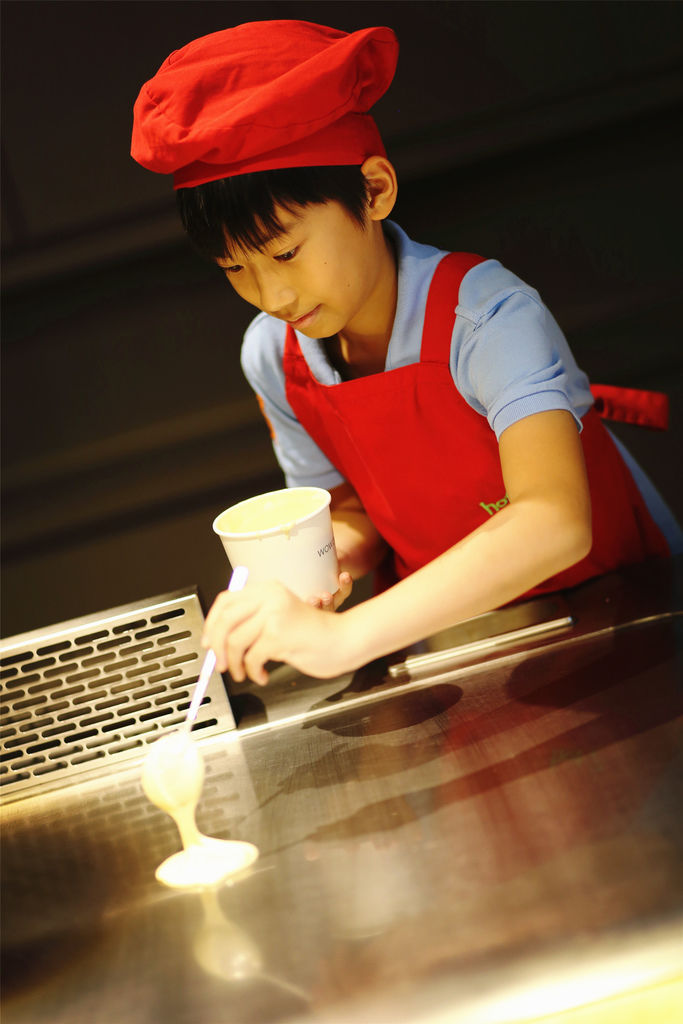 在享用銅鑼燒的同時,每個小廚師也有「莓果黑醋栗冰鑽」可以暢飲,hot 7 的招牌餐點「牽絲起司蛋捲」也是每一位小廚師都有的點心