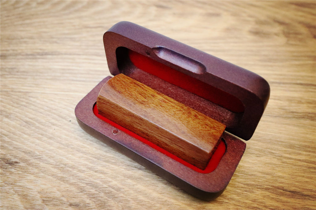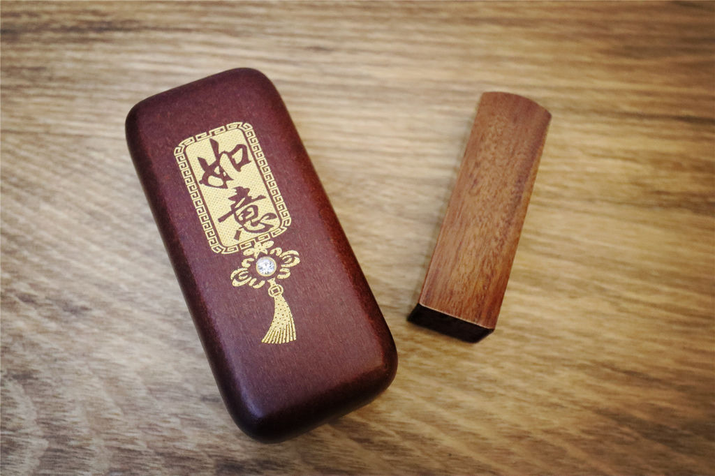 可以選擇方章或圓章,材質厚實又精緻,紫檀木硬度高、密度大,仔細看就能發現天然的紋路和樹木年輪,實品相當圓潤又細緻
