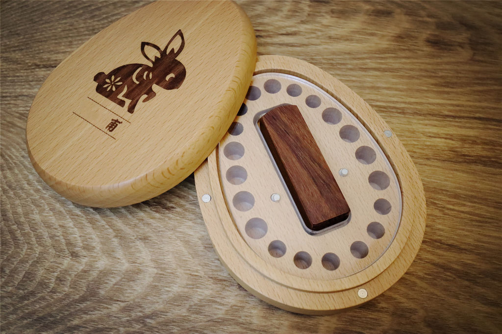 看看我幫甫甫選擇的乳牙印章收藏組,結合「乳牙盒+印章(臍帶章)」的收藏,盒面上可選擇【12生肖】的圖案,20顆乳牙完整收納