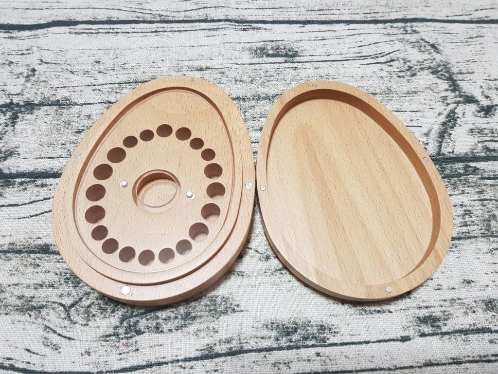 需要注意的是,只有【蛋型乳牙盒】才有「六分印章收納位置」或「中間單純一個圓孔」可以選擇,可愛的蘋果乳牙盒只有20顆乳牙的位置喔!