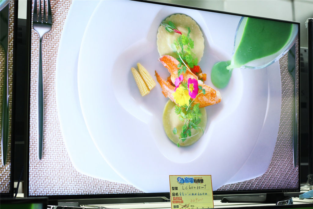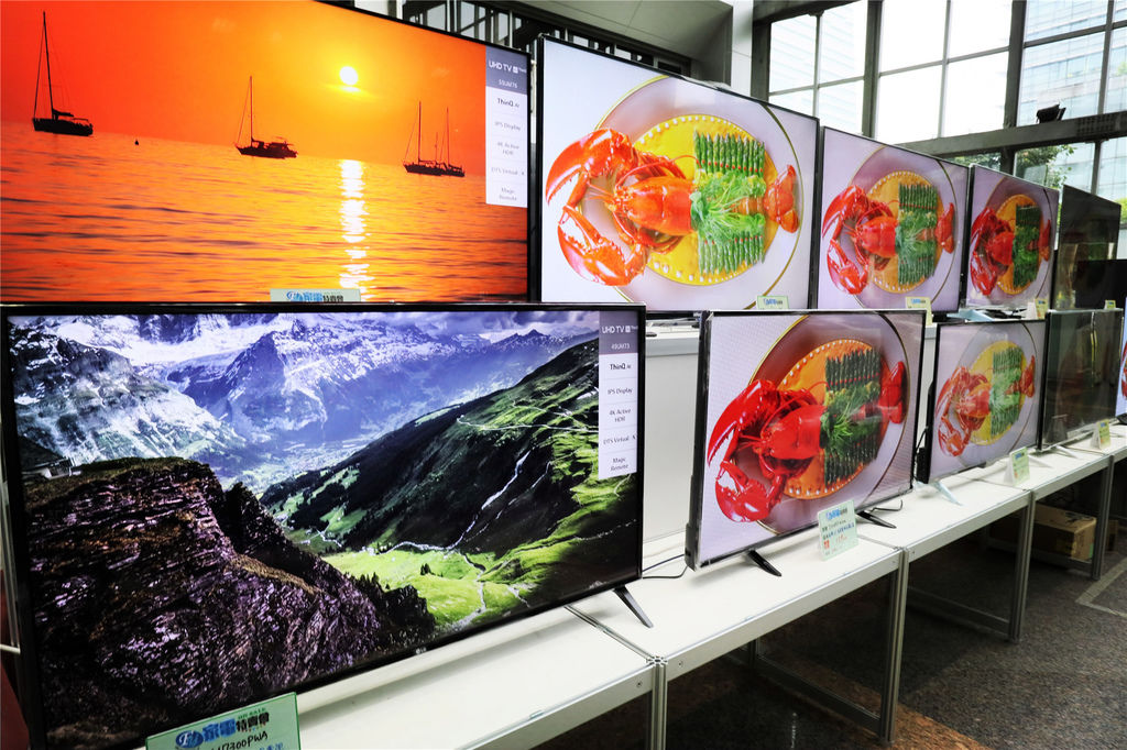 陣仗超大的電視機牆,LG、SHARP夏普、TOSHIBA、國際牌、鴻海都是知名大廠牌