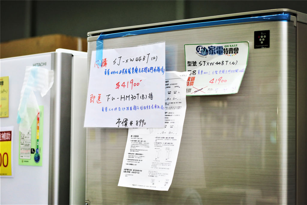 任何家庭或外宿的朋友一定都找得到想要的冰箱,特賣會中從大型直立式冰箱到兩層小冰箱都找得到,冰箱是現場人氣最高的搶手貨