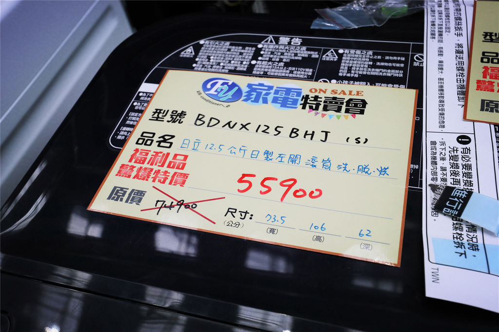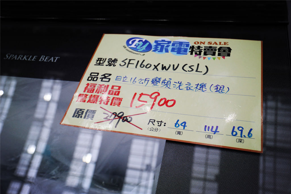 特賣會中日立洗衣機這台很搶手,是五月天代言的喔,機種款式新,福利品的驚爆價格也很讚,直接省下將近2萬元!