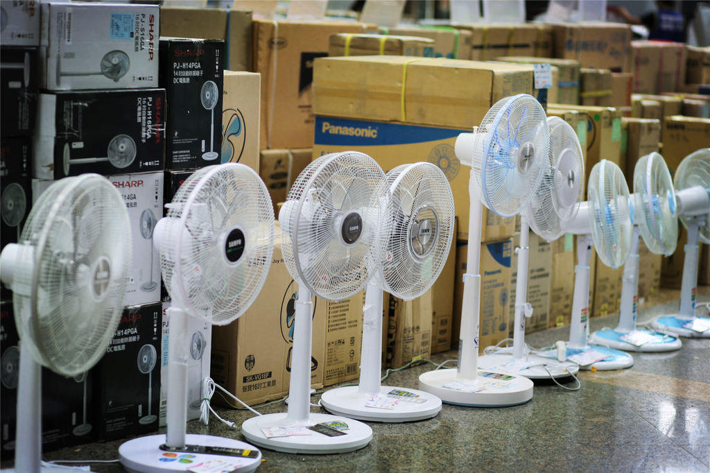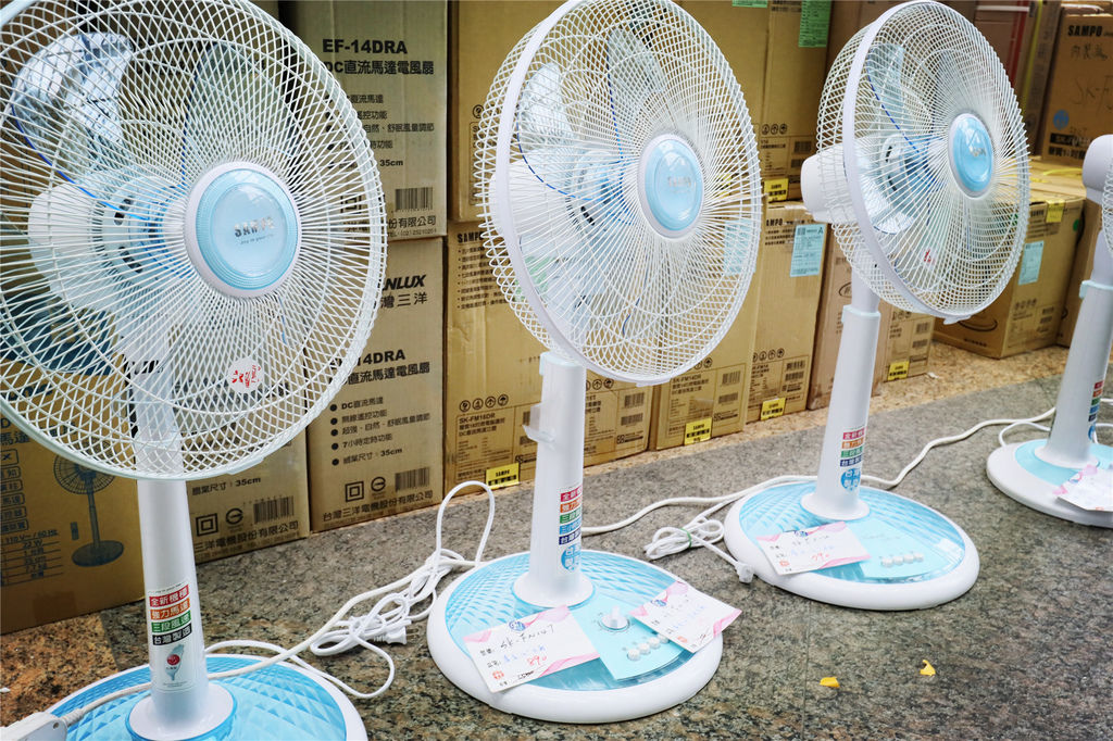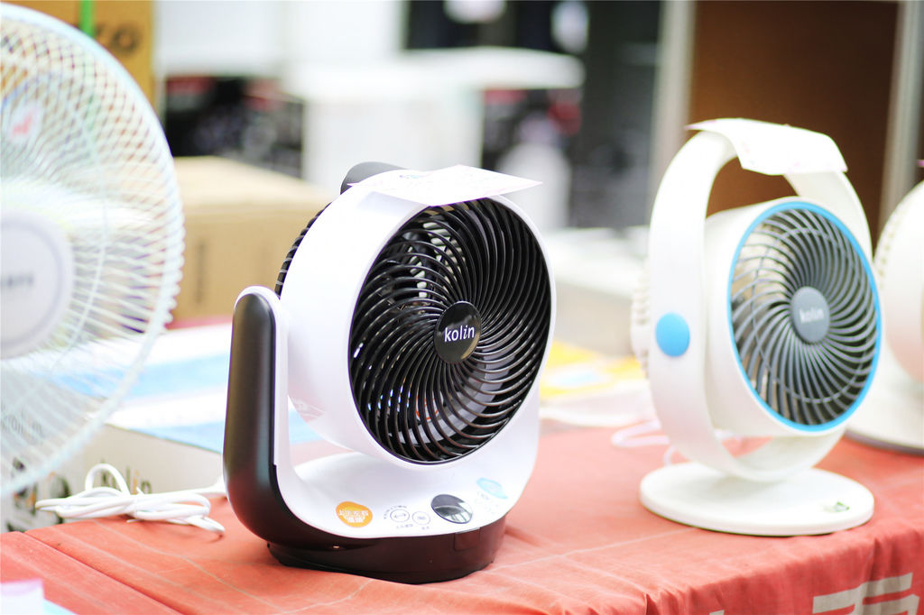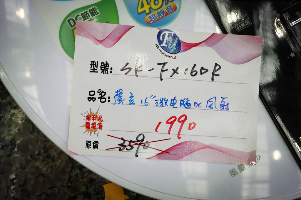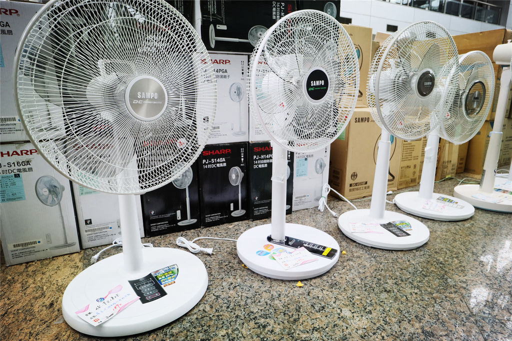 現場有十幾款DC風扇,除了省電外,DC風扇可以電子定時、遙控器等多項優點
