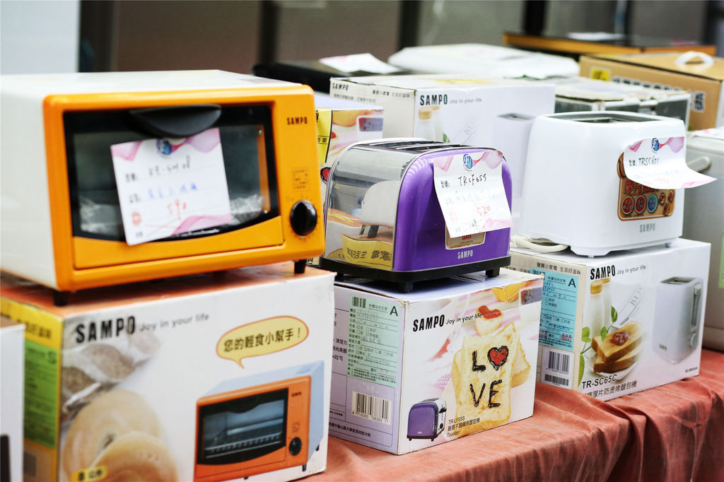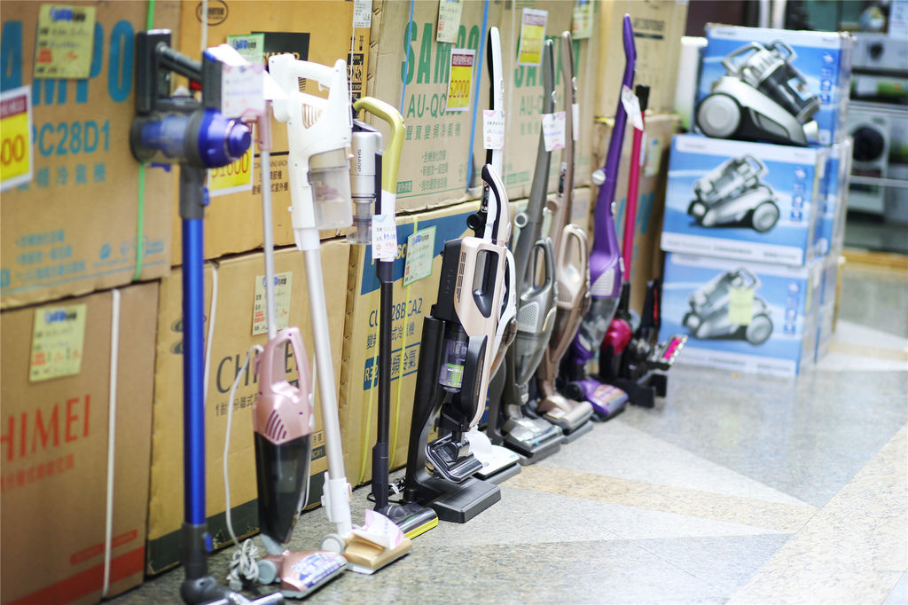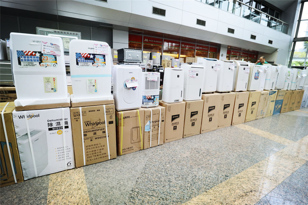 種類豐富,大家電小家電都有,有電冰箱、冷氣機、電視、洗衣機、洗脫烘衣機、除濕機、烤箱、電風扇、吸塵器、果汁機、熱水瓶