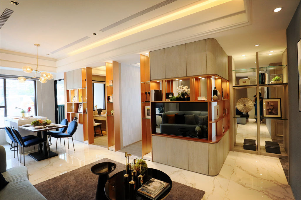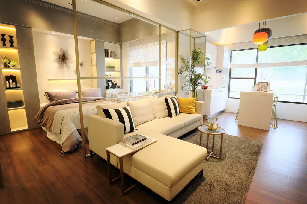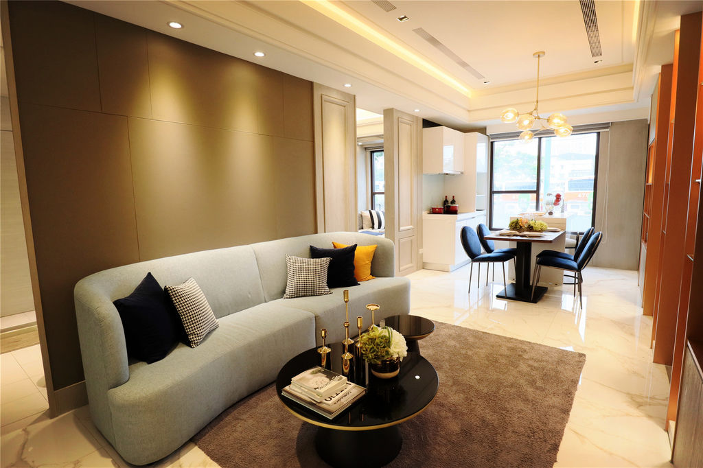 先來看看二房的設計,格局方正,客廳及房間都在主要採光面上,所以一眼望去,就能感受到陽光灑進屋內的活力感,兩個房間、一套衛浴與寬敞客廳,適合單身貴族、小夫妻,小家庭入住。