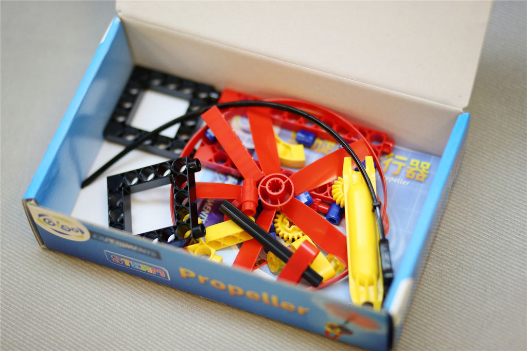 智高螺旋槳是同步德國的科學教具,適合小學生實作,喜歡自己組裝DIY的甫甫一拿到這個螺旋槳非常開心,大約花了10分鐘組裝完成,不會太困難,而且螺旋槳非常好高好順,可以在家裡飛、也很推薦把這組螺旋槳帶到戶外草地上盡情翱翔喔!
