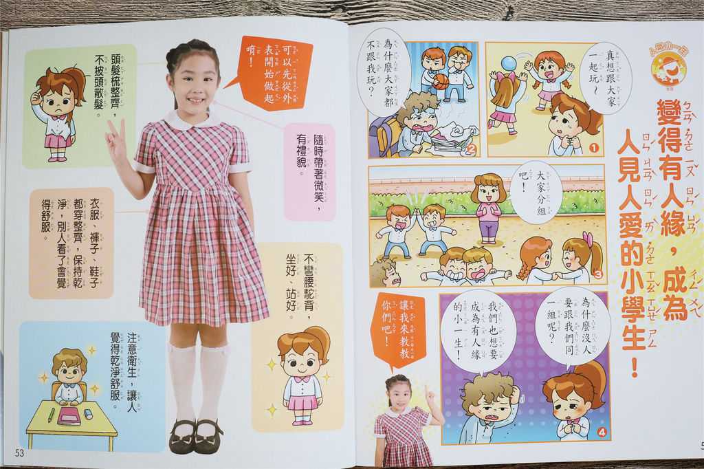 主教材《知識百科》讓孩子上知天文下知地理,像是超級酷知識,帶著孩子一起認識用石塊堆疊而成的金字塔祕密,名人逆轉勝,則是介紹「華特‧迪士尼」,這應該是好多孩子想知道的名人故事吧! 還有貼近生活的主題~人氣小一生,讓孩子知道如何成為人見人愛的小學生,透過有趣的引導,孩子更能知道要怎麼做才能更得體、更有人緣!