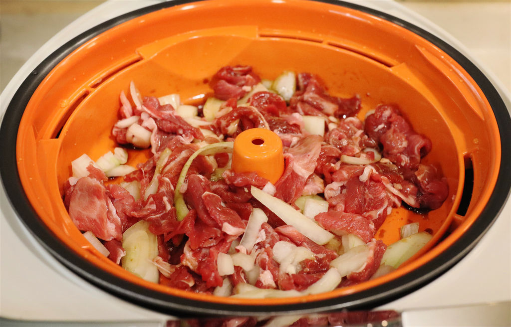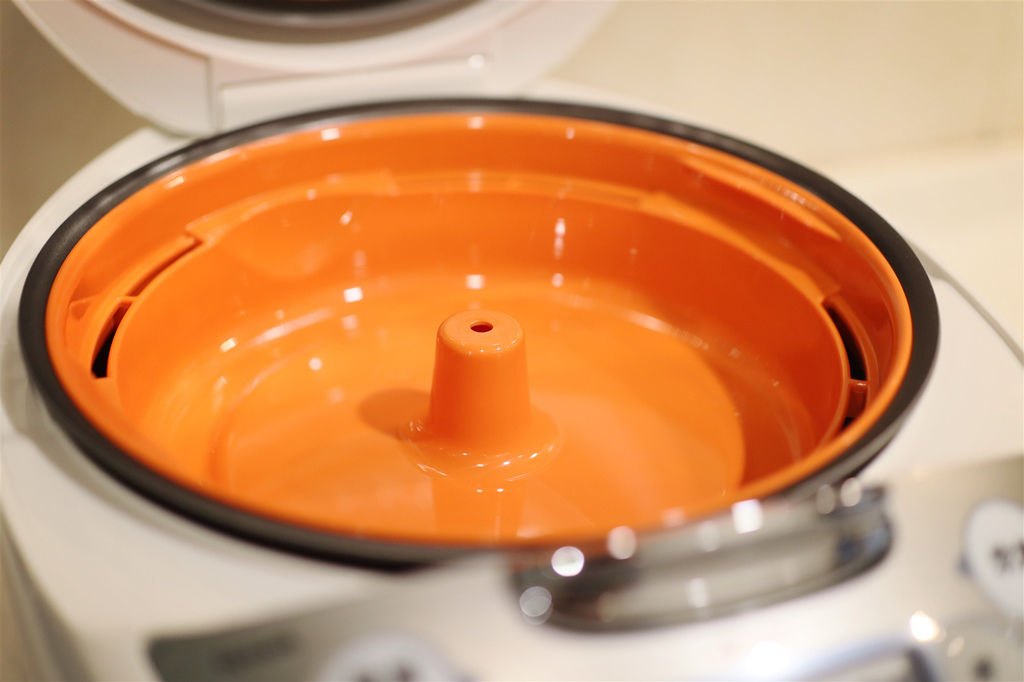 除了「黑圓遠紅外線厚釜」、「加大電熱器」兩大特色之外,這個橘色的調理盤也是我家晚餐不可或缺的大功臣,就是使用這個調理盤來幫我煮飯+上菜一次OK的! 貼心至極的好設計,我把米洗一洗先放入內鍋,再把清洗乾淨的食材全部放入調理盤,按下「同時烹煮」後,我就可以輕鬆等著美味餐點的到來,你說是不是夠方便!