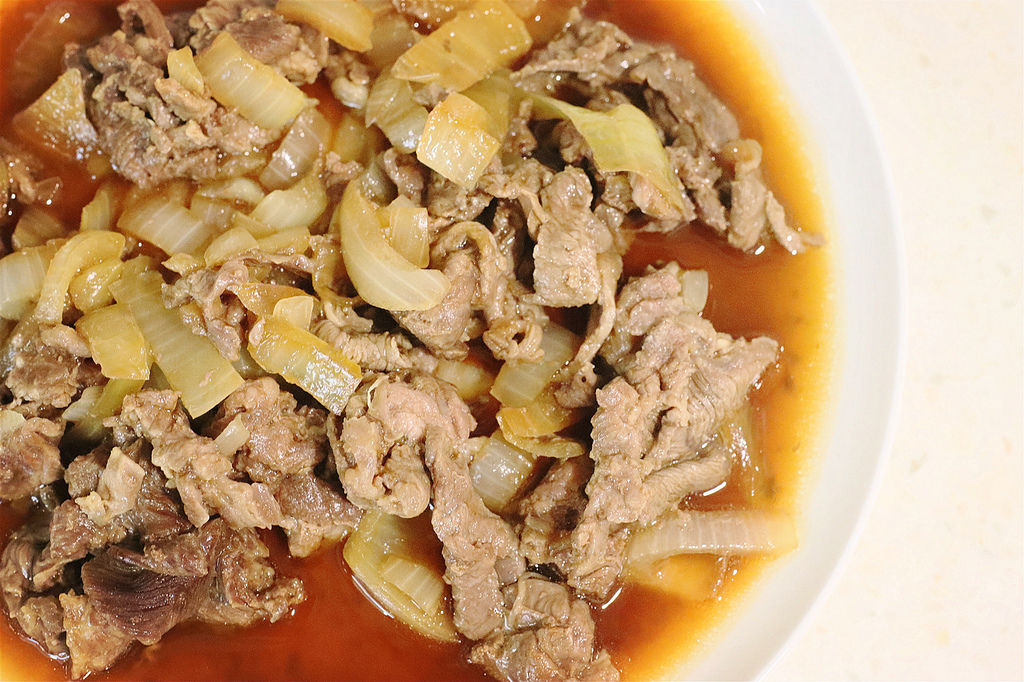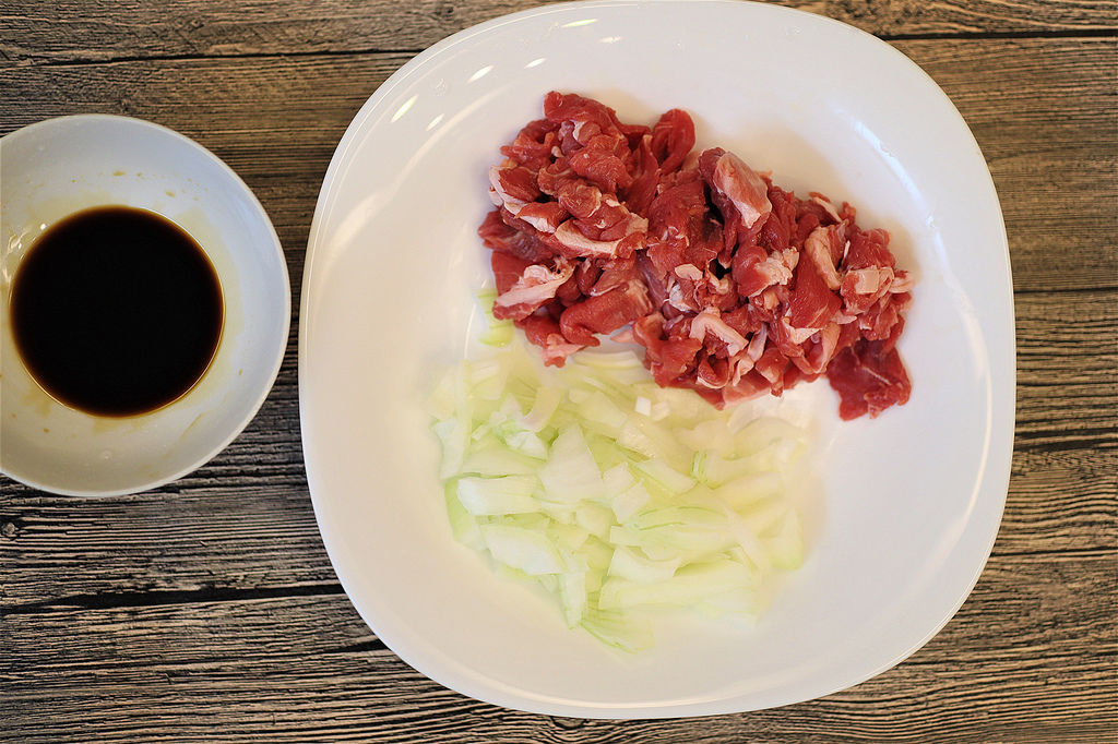 牛肉160g、洋蔥50g、醬油1大匙、味醂1大匙