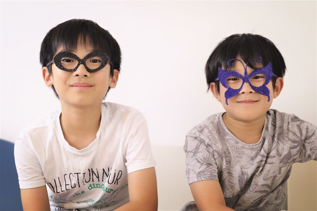 一收到3D筆的包裹,孩子們就開心的拆箱研究起來,就在媽咪準備晚餐的同時,鏞鏞甫甫已經「畫出」屬於自己的立體眼鏡,是不是太不可思議!