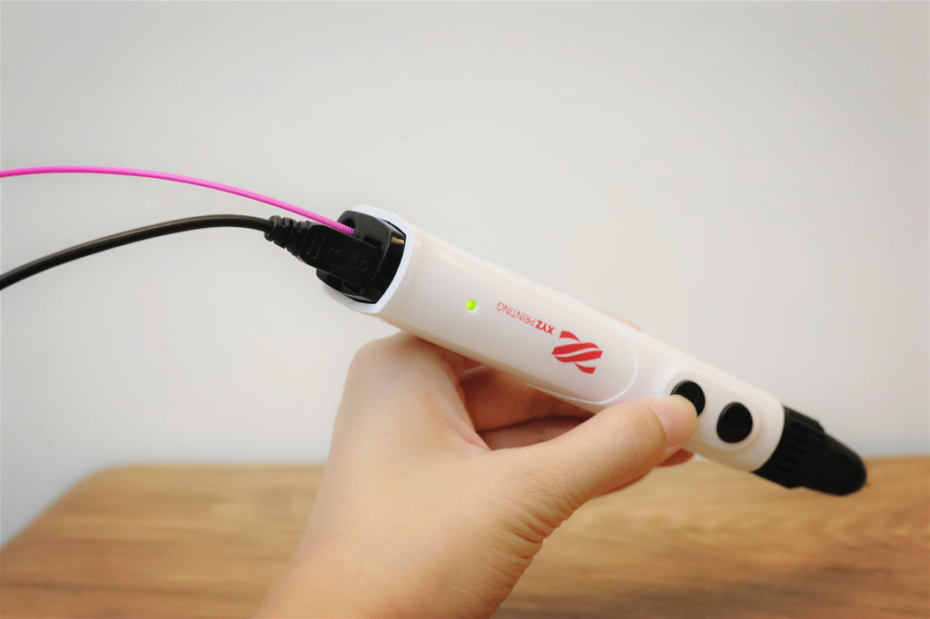 由於是彩色熱熔膠的原理,所以筆頭的溫度對小朋友來說很重要。一般的3D列印筆頭溫度是在接近200度左右,對於小朋友單獨使用的話,無法完全放心,所以這款XYZprinting 3d Pen Cool是使用低溫筆頭,讓我可以安心的讓寶貝們自己使用。