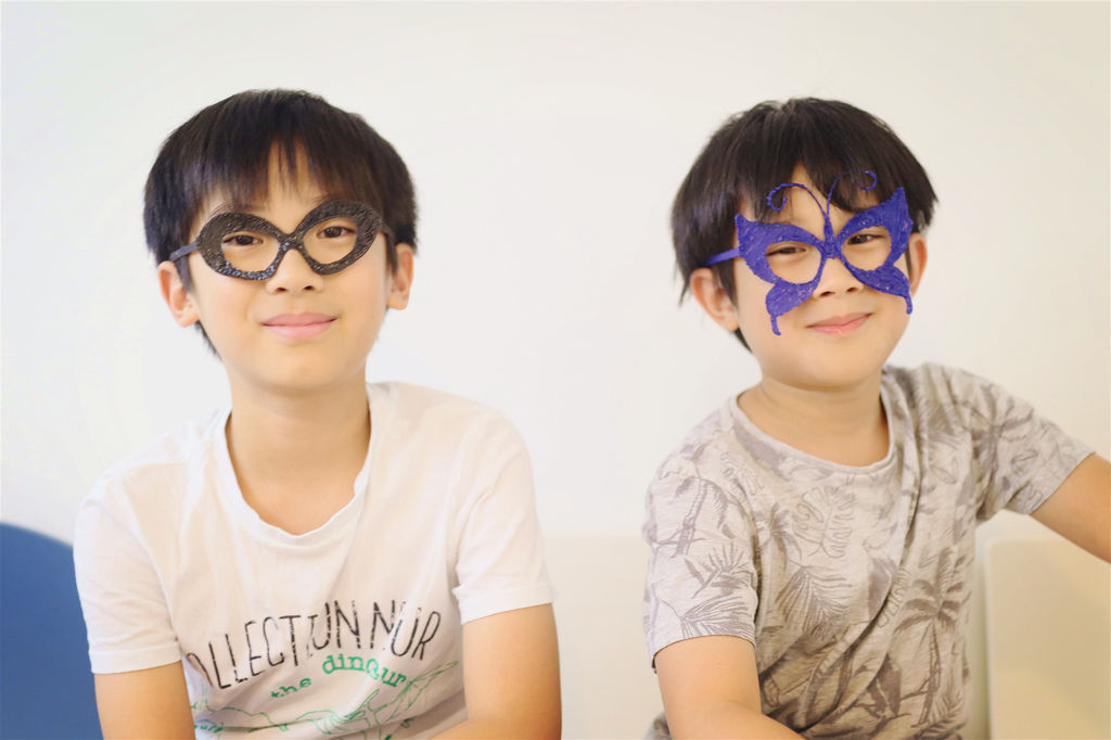 來看看鏞鏞甫甫製作眼鏡吧~這副眼鏡才花了孩子們幾分鐘的時間就完成,只要順著模板慢慢細心的繪圖,很快地就有一副獨一無二的眼鏡可以戴了!