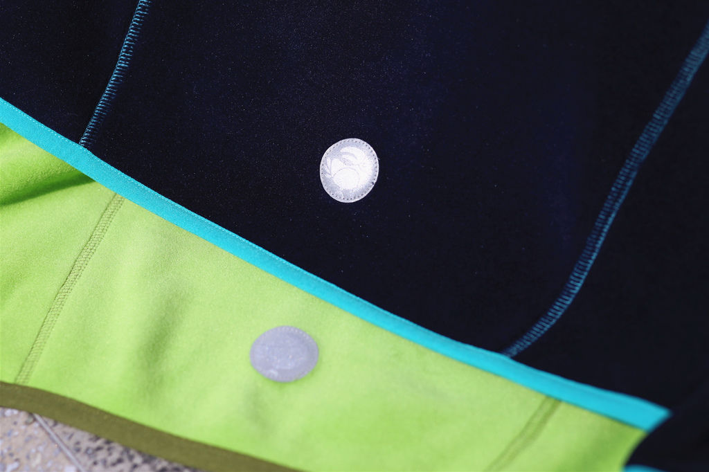立領的布料更厚實,是雙層的,保暖度更好! 拉鍊表面也有反光條,安全度大增!