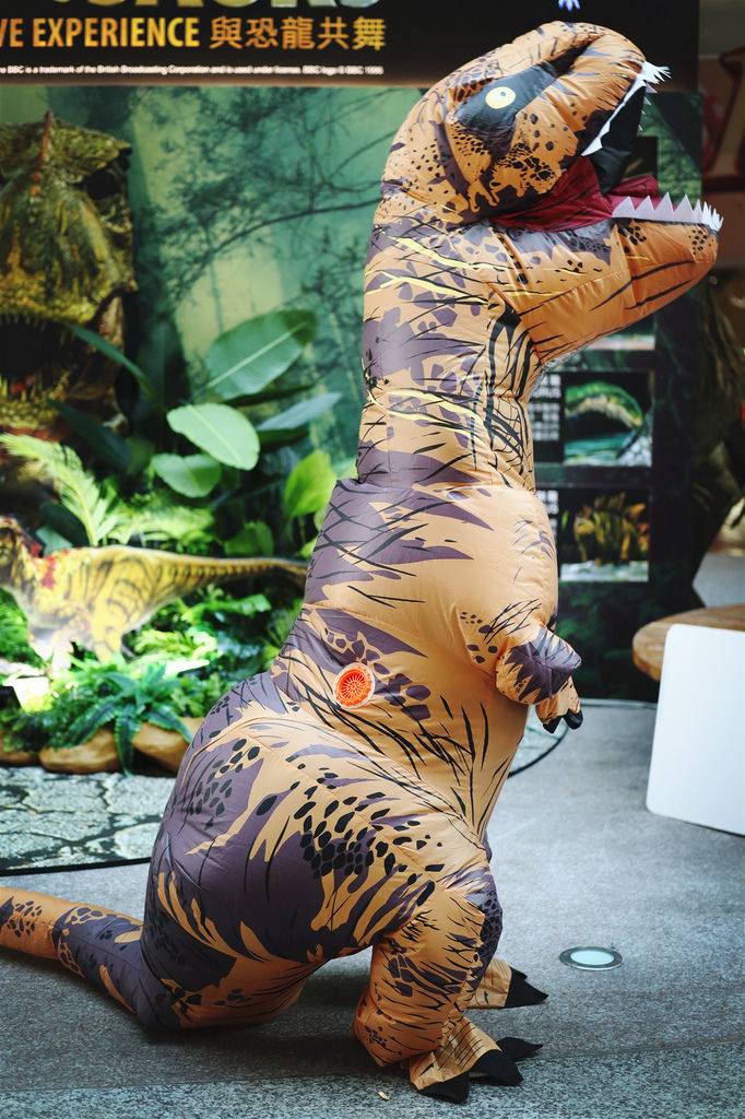 來美麗華搶購票券,也要順便拍照打卡,因為還可以領取獨一無二的恐龍面具,可愛的是,在現場還有一隻逗趣的暴龍走來走去,拍照時還會擺姿勢,低頭、彎腰、挺直身體、搖頭晃腦,動作好多,怎麼會那麼可愛啊!