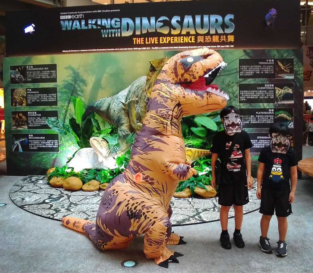 恐龍真的很吸引小朋友,一拿到面具,鏞鏞甫甫就迫不及待的戴上,足以見得恐龍在孩子心中的地位! 連可愛恐龍都讓孩子喜愛了,更不用說是斥資6億,近20隻的擬真動態恐龍,加上場景、聲光、特效的震撼劇場演出,一定會讓全家人更能融入在奇妙又驚險的史前世界,跨越千萬年時空也只有這次的機會了!