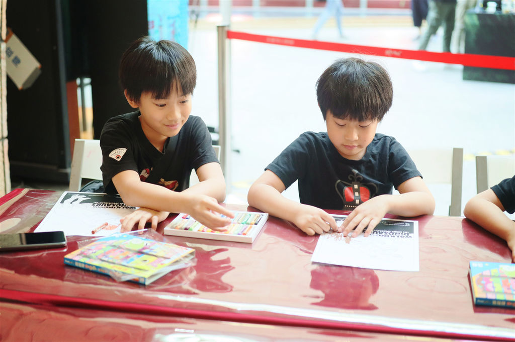 當天剛好有恐龍著色活動,鏞鏞甫甫好幸運,還可以一邊聆聽恐龍的叫聲,一邊繪畫,光是在活動現場就已經能感受到恐龍的震撼力了!