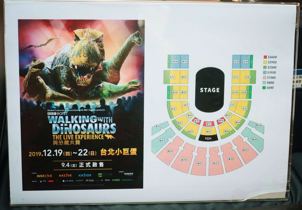 要特別注意的是,那天我們很早就前往詢問購票事宜,結果發現前排最好的位子已經即將售罄,果然大家都是想搶最佳視野,所以想要體驗身歷其境效果的朋友,手腳要快,難得來台灣的世紀恐龍秀,慢一步票就沒囉!