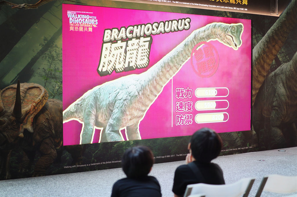 美麗華展覽現場還可以欣賞大螢幕影片,影片是關於BBC團隊如何進行研究、設計、製作影集,並將栩栩如生的恐龍般上大舞台的真實記錄。當然也看到好多孩子們最期待的超大恐龍,每一隻都像真的一樣,要說這是恐龍復活,我也相信啊!