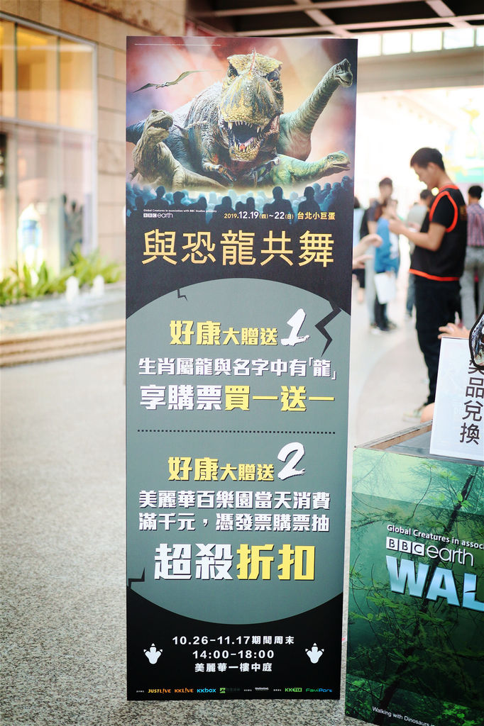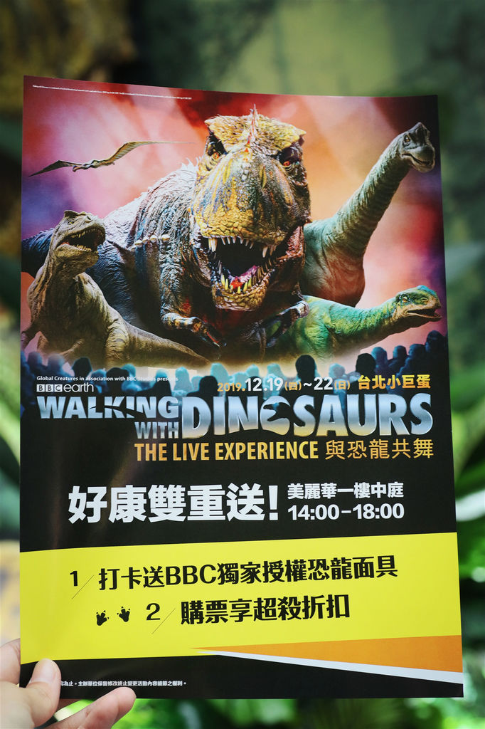 這次到美麗華,我們想要看看【與恐龍共舞】有那些恐龍、兌換恐龍面具,最重要的是要以半價購得票券,買一送一的優惠只有在美麗華買得到,說什麼都要來一趟! 即使起到11月17日,每個禮拜六日的下午2:00~6:00,在美麗華中庭都有販售半價優惠票,錯過機會就不再囉!