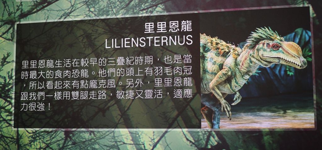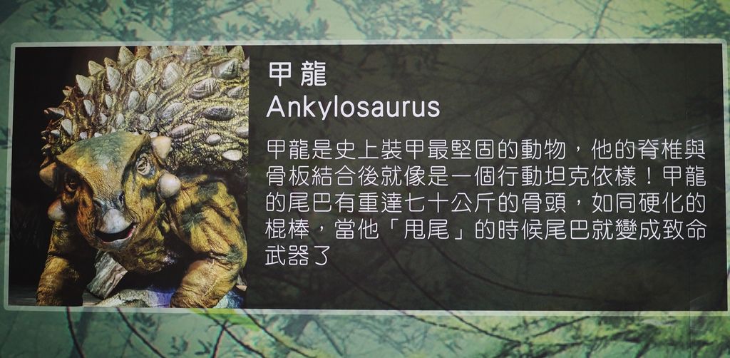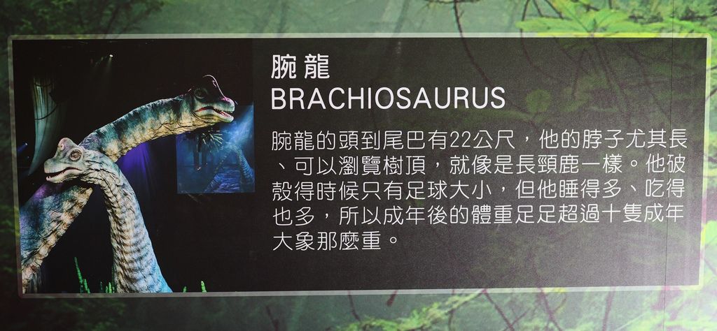 【與恐龍共舞】因為超細膩、超寫實,每隻恐龍約2台法拉利的價值,總造價約30億台幣,活靈活現。叫得出名字的恐龍幾乎都看得到,像是有兩排鱗甲在拱形背上的劍龍、八層樓高的雷龍、三層樓高的暴龍母子,甚至還有在空中遨遊的翼龍,真的是讓人太期待了,空前的規模和高質感場景,簡直就是超越現實的演出!