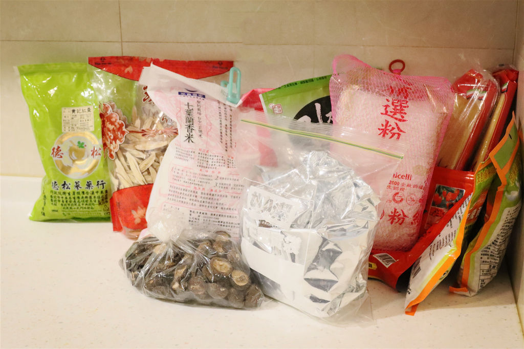 你看我的這些過年食材,真的是一大堆, 白米、煮火鍋要吃的粉絲、南北貨類型的紅棗、枸杞、黃耆、香菇,調味料類的冰糖,孩子愛吃的義大利麵、早餐穀片,非常容易受潮的海苔香鬆、黃豆,這些食材以前我都是隨隨便便用袋子裝著而已,不但很凌亂,衛生也堪憂!