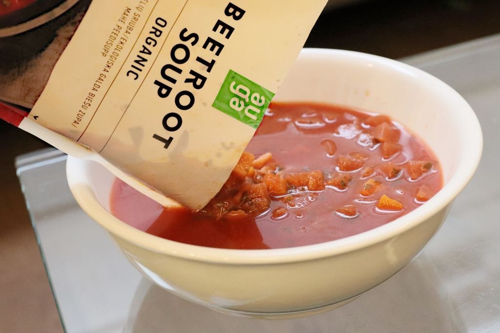 這是一款有著甜菜根特別風味的《有機甜菜根羅宋湯》,甜菜根有「天然紅寶石」之稱,也有「歐洲靈芝」的美譽,營養價值更高,這碗湯湯頭濃郁鮮甜,值得品嚐,每一口都能喝得到大量甜菜根及番茄熬煮的美好滋味,是非常豐富紮實又香醇的口感!