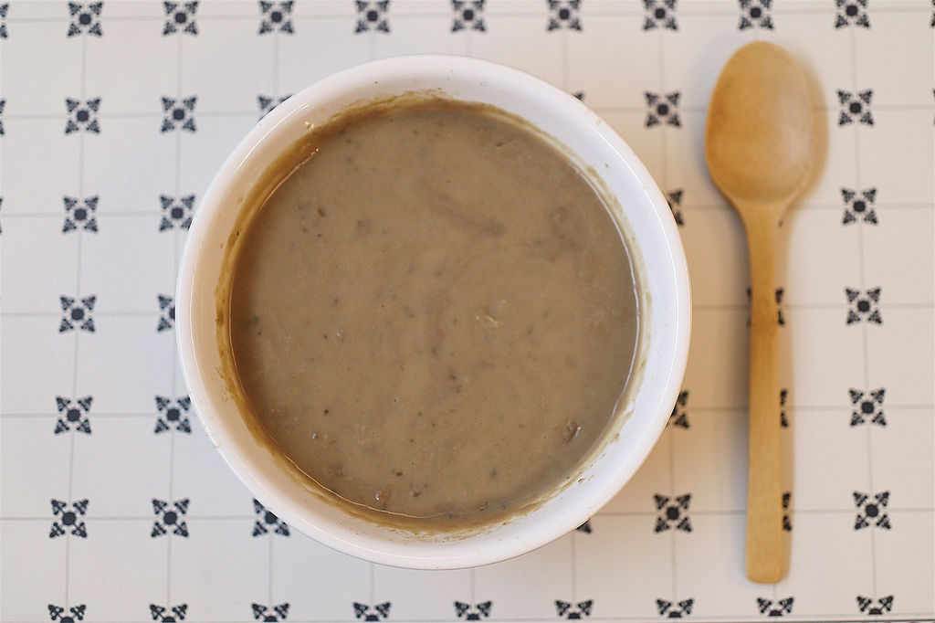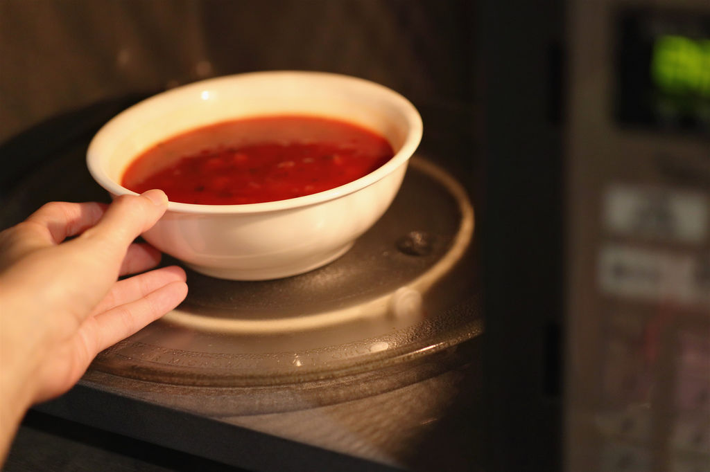 蘑菇濃湯的質地濃郁,除了用微波加熱的方式之外,我也習慣用電鍋加熱!