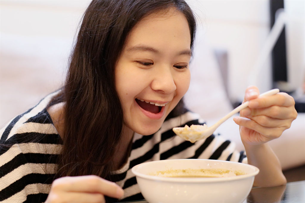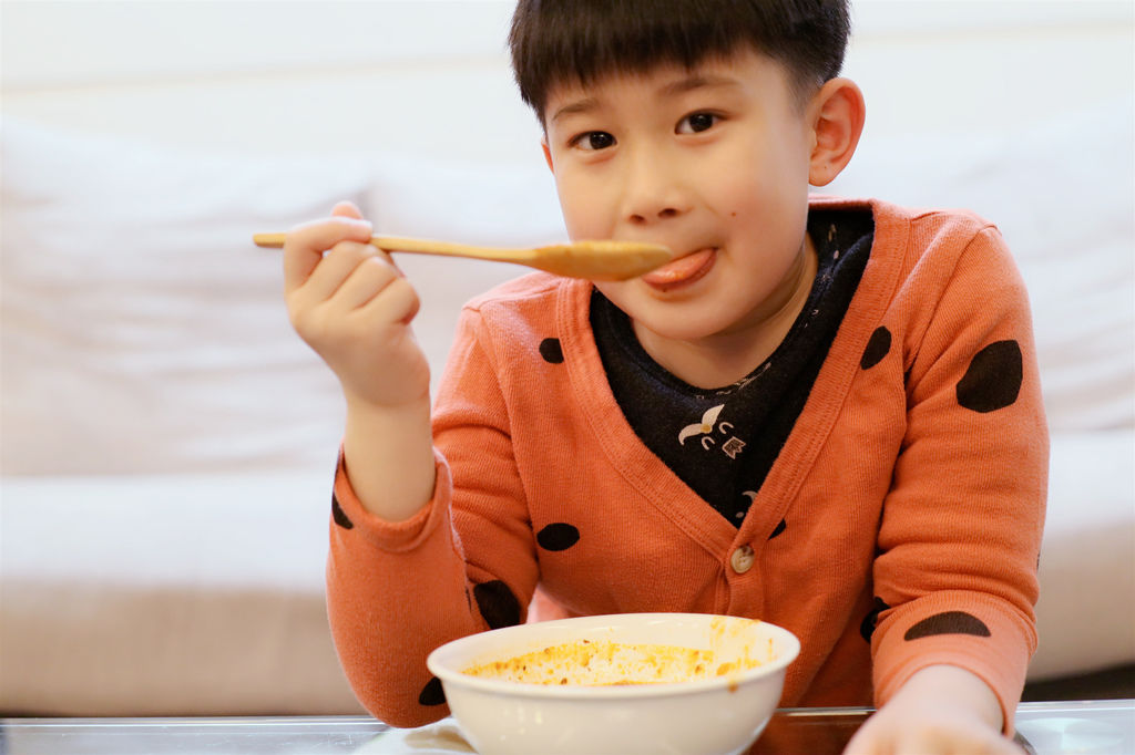 我們家人很愛喝濃湯,有趣的是每次喝完一碗,鏞鏞甫甫就會說:「還想再來一碗!」