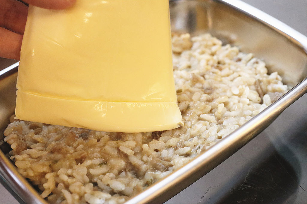 我喜歡先將蘑菇濃湯直接拌飯後,加入起司烘烤,起司溶化後稍微攪拌一下,就是非常好吃的起司燉飯,說真的這樣的美好口感,真的可以媲美餐廳料理了!