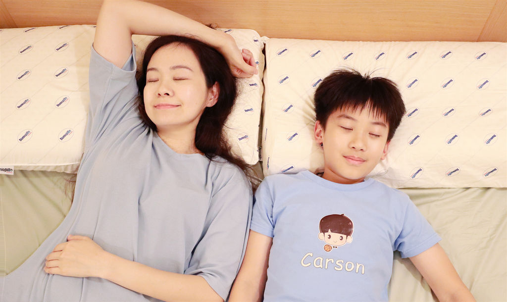 像是鏞鏞習慣側睡和仰睡,以他目前的年齡和身高來說,兒童枕已經不敷使用,我就幫他選擇這款包覆性強、有完美人體工學設計的「工學枕」,這樣的睡姿才能徹底放鬆,減輕頸椎的負擔,並保持呼吸的暢通,自然舒緩壓力,並睡得香甜!