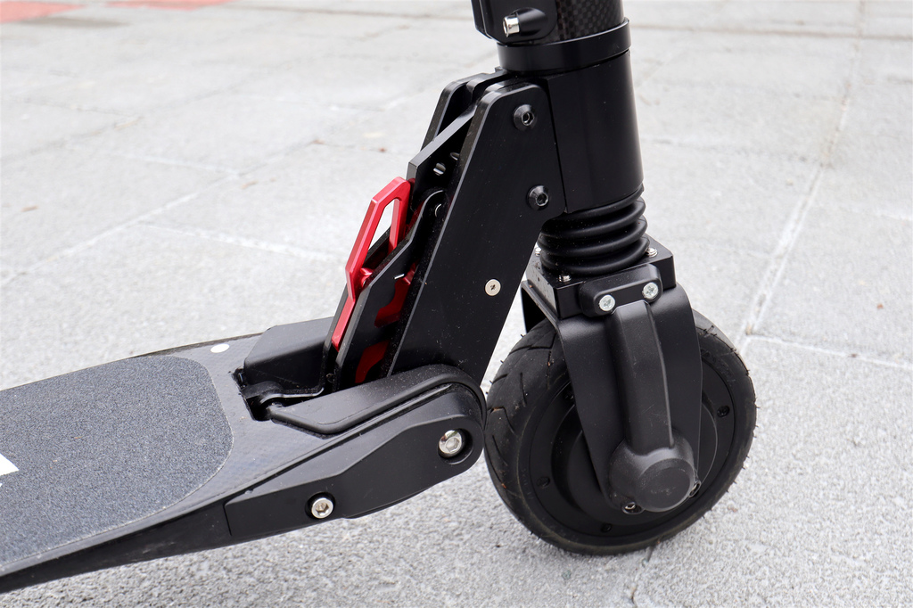 這款滑板車適合國中以上到成人使用,像我163公分的女生,騎起來很舒服,再高一點的男生也很適合喔! 更棒的是,材質是高規格的「碳纖維」,所以整台滑板車的重量只有7.6kg,對於女生來說也很輕盈好攜帶,平常騎乘,或是有需要到戶外郊遊放在後車廂備用,都很方便!