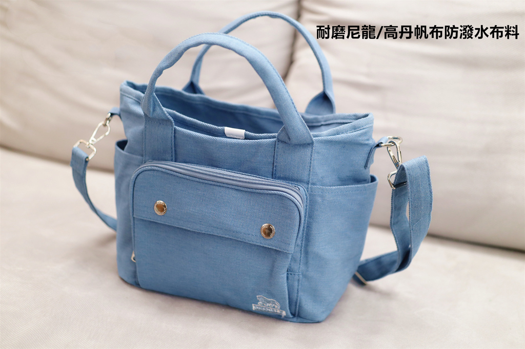 很耐髒的耐磨尼龍/高丹帆布防潑水布料,揹起來無後顧之憂,不用擔心容易磨到或碰水、碰髒汙,甚至還可以直接用水清洗!