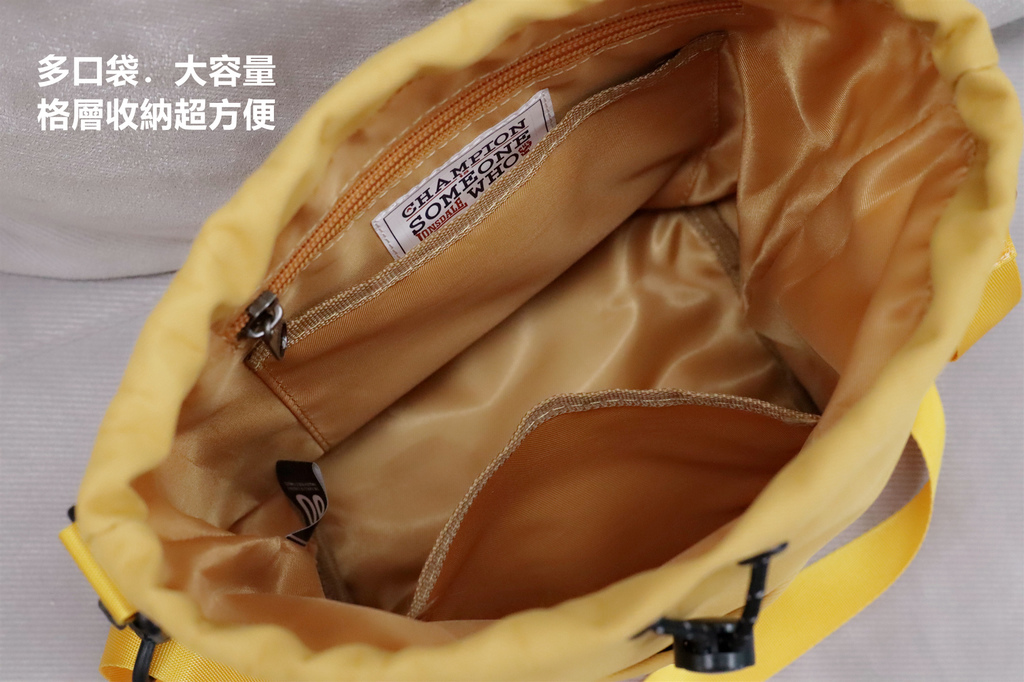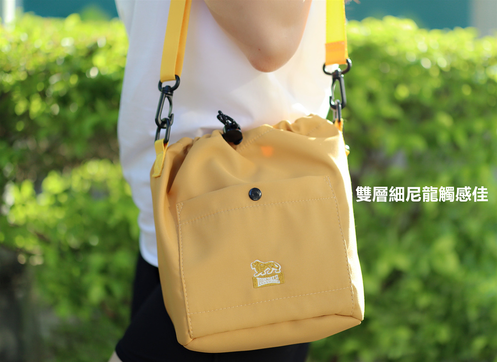 再來看看水桶包,材質是細尼龍的設計,摸起來很滑順,充滿輕盈感!