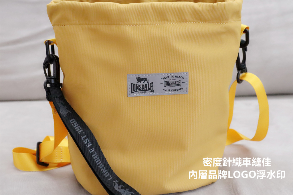 大容量的設計,裡裡外外就有6個夾層,外面可以放手機、悠遊卡,裡層可以放隨身小物、化妝包、輕型雨傘,真的很夠裝! 仔細看拉鍊,都還印有LONOSDALE的LOGO,每個細節都非常講究!